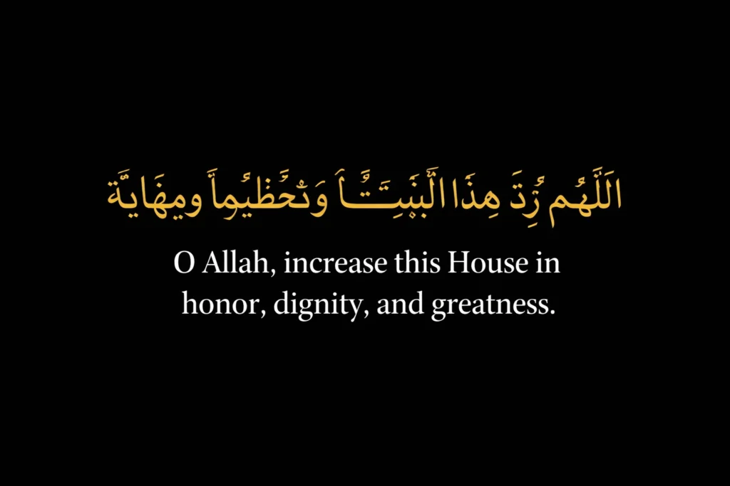 اللَّهُمَّ زِدْ هَذَا الْبَيْتَ تَشْرِيفًا وَتَعْظِيمًا وَمَهَابَةً
